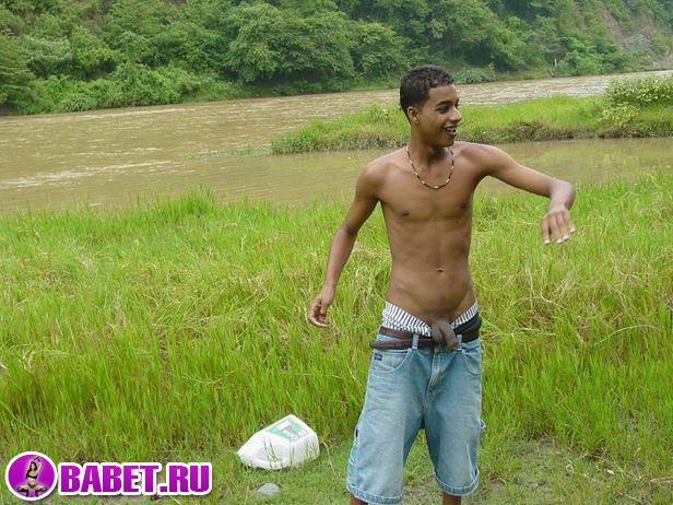 Голый парень на природе светит хуем