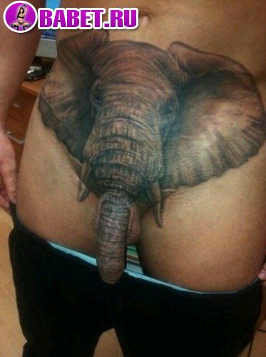 Описание: слон с хоботом, мужская интим татуировка