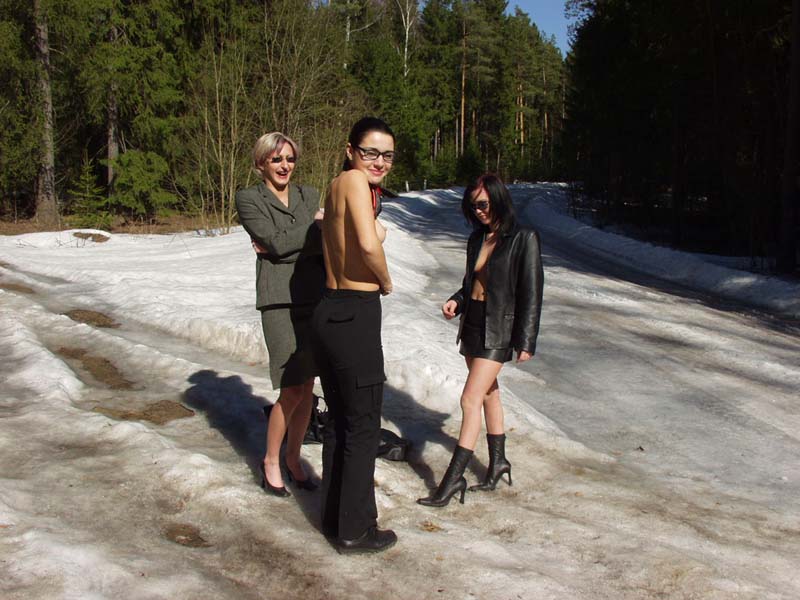 Три пиздоси полностью разделись в лесу
