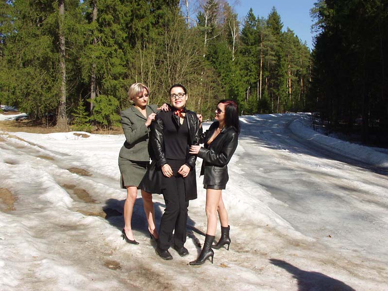Три пиздоси полностью разделись в лесу