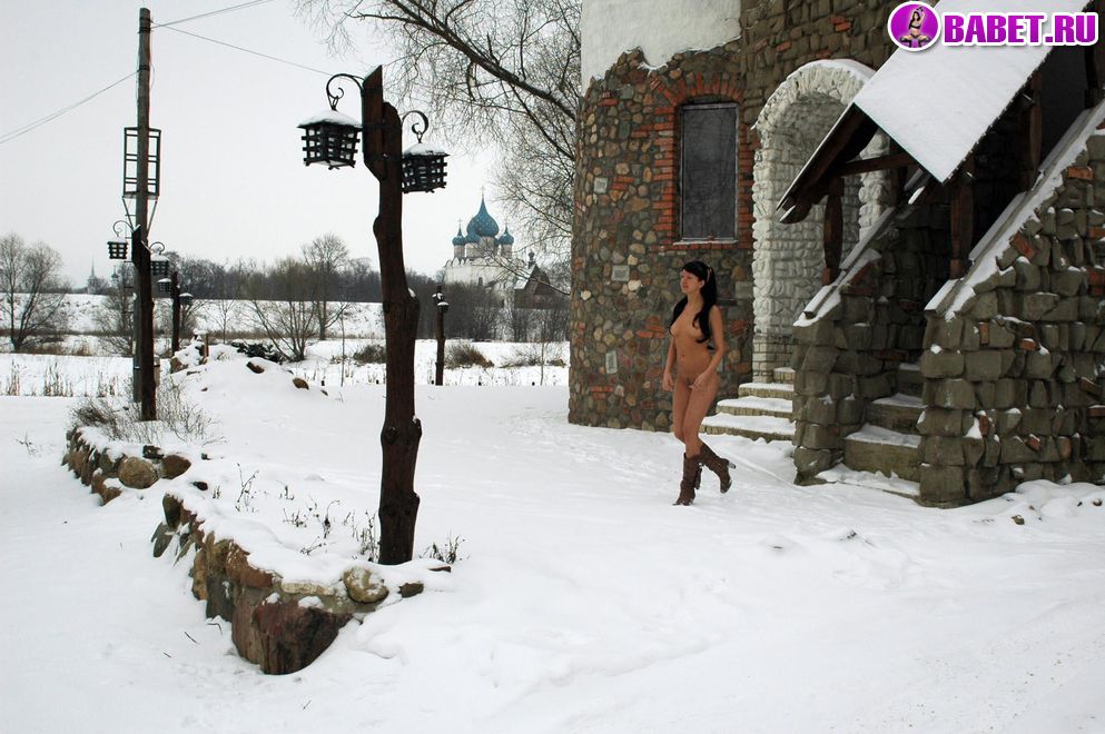 Голая длинноволосая брюнетка