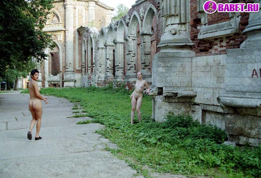 Две голые писюхи ходят в парке