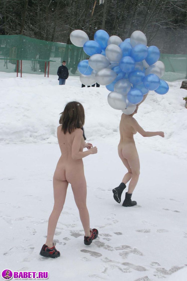 Голые девушки зимой на улице