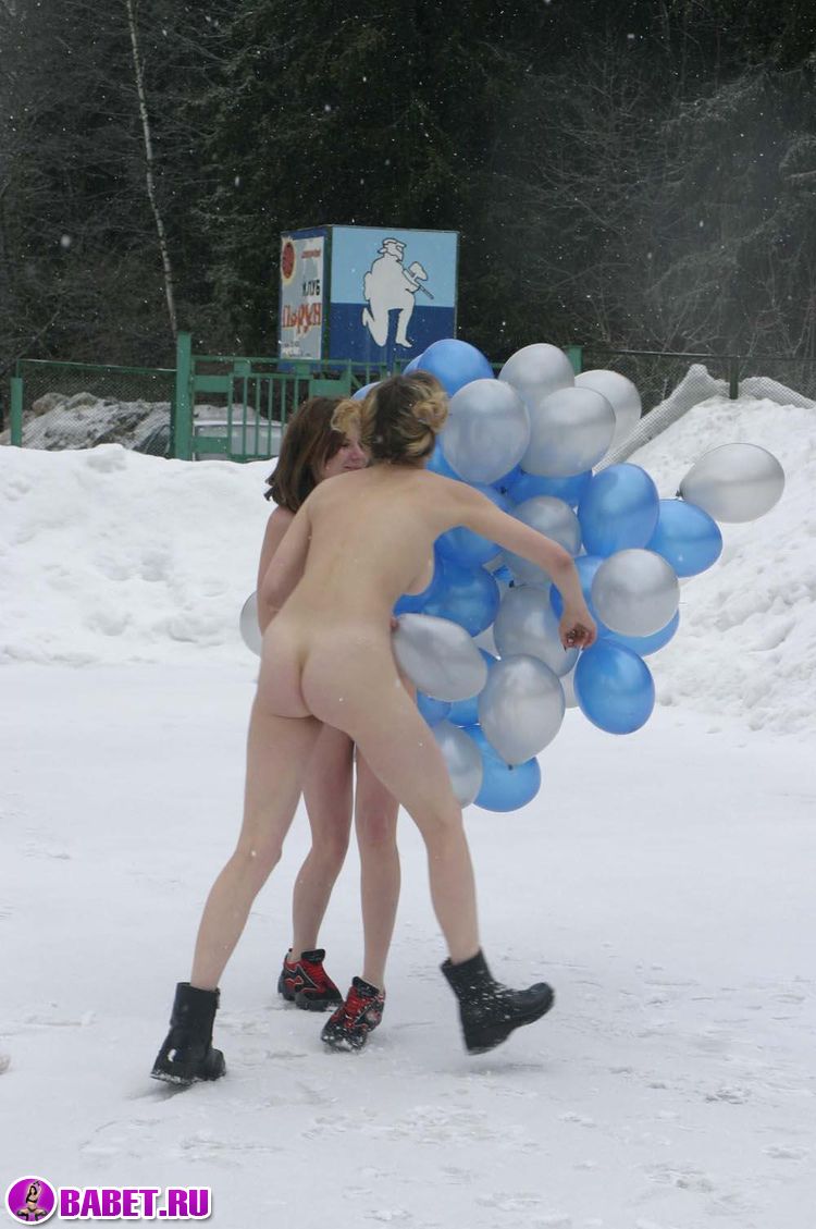 Голые девушки зимой на улице