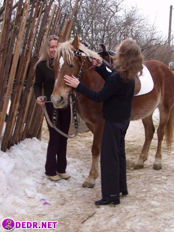 Голые тёлки катаются на коне