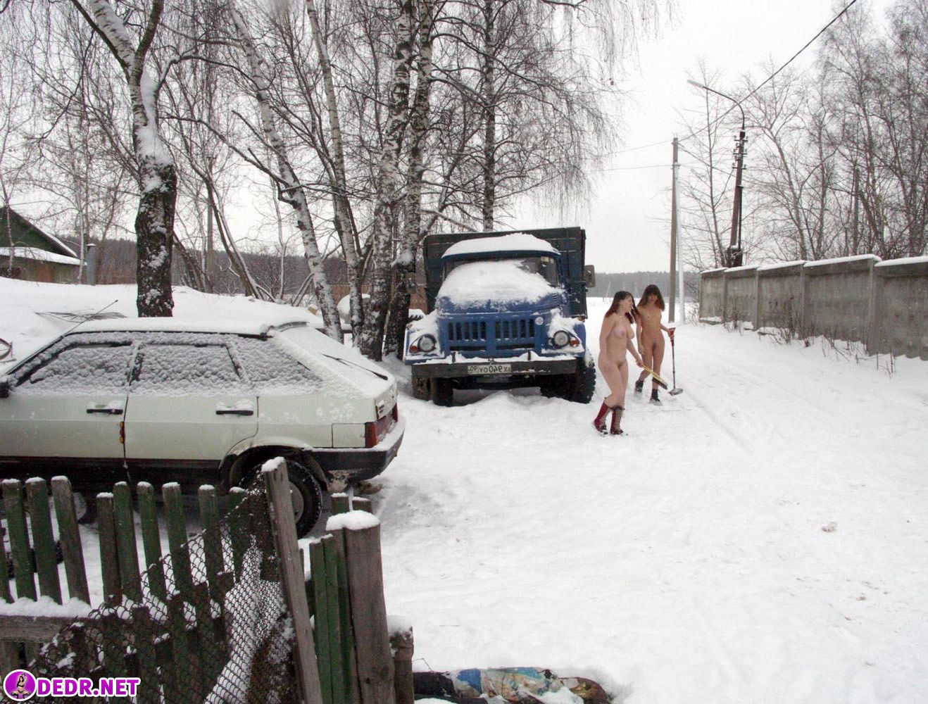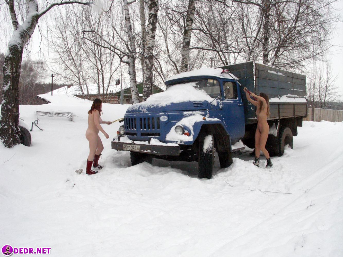 Фото: Две голые девушки чистят от снега автомобиль 123191750040.jpg
