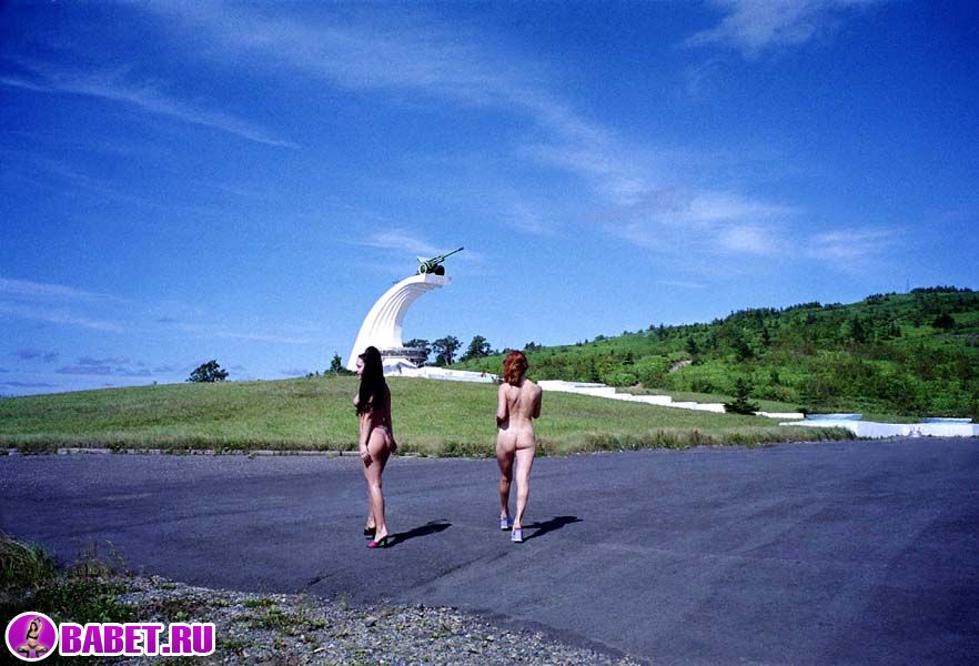 Голые девчёнки рядом с памятником
