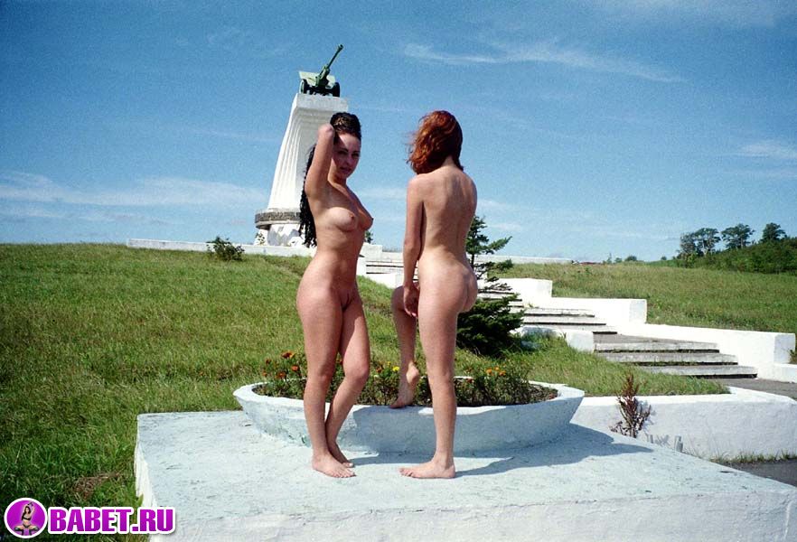 Голые девчёнки рядом с памятником