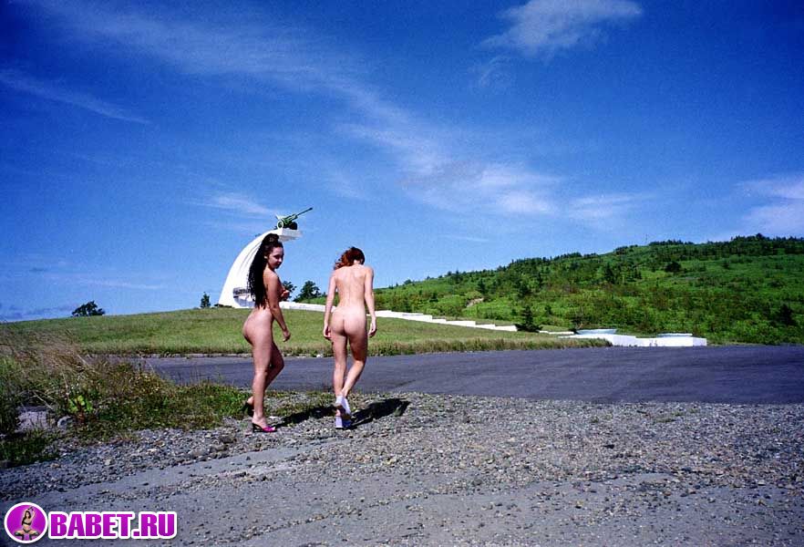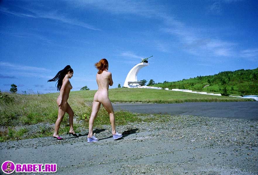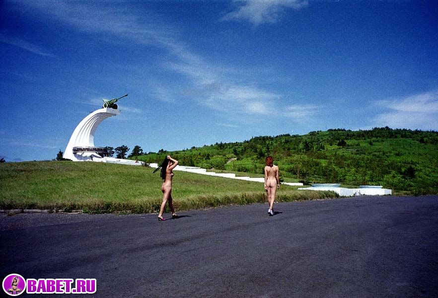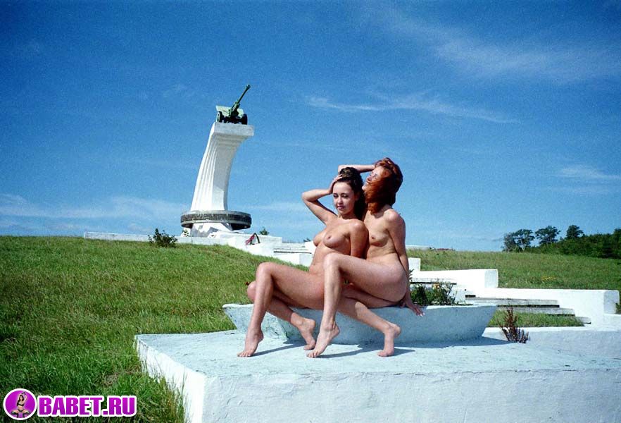 Голые девчёнки рядом с памятником