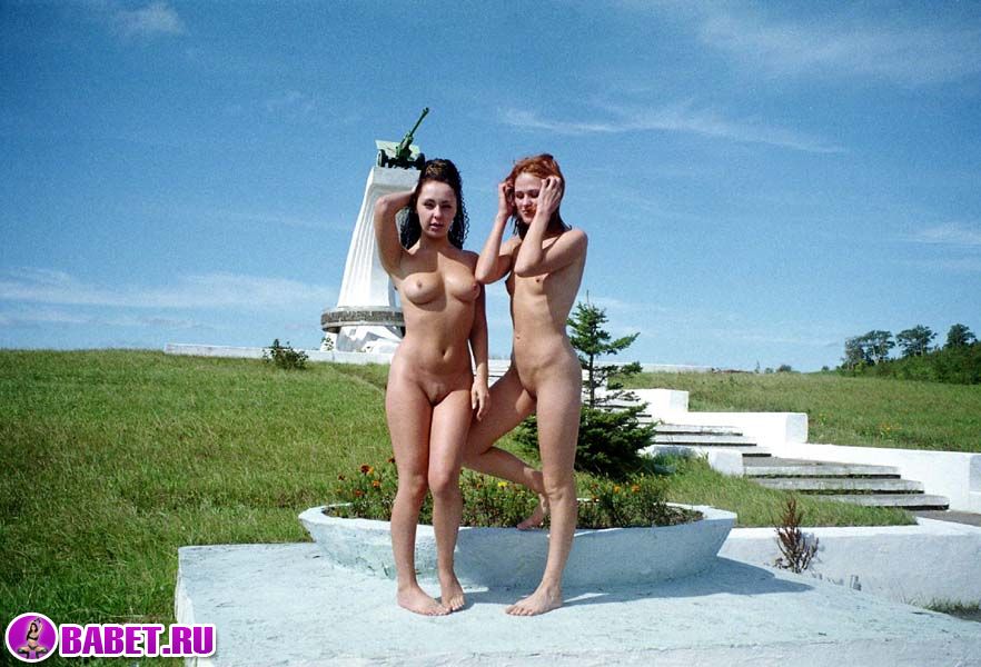 Голые девчёнки рядом с памятником