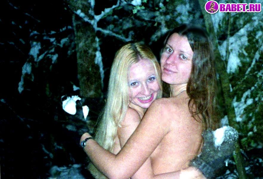 Голые ночью в зимнем лесу