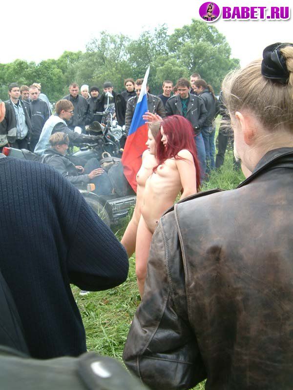 Голые тёлочки на мотоцикле