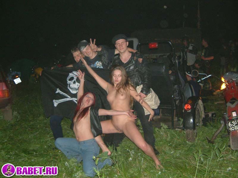 Русские девчёнки разделись на байкер шоу