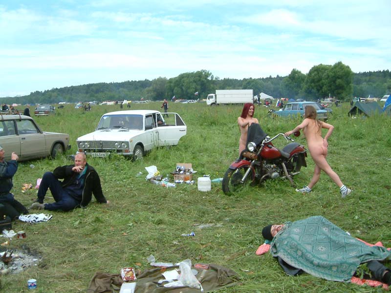 Голые девченки собрали целую толпу