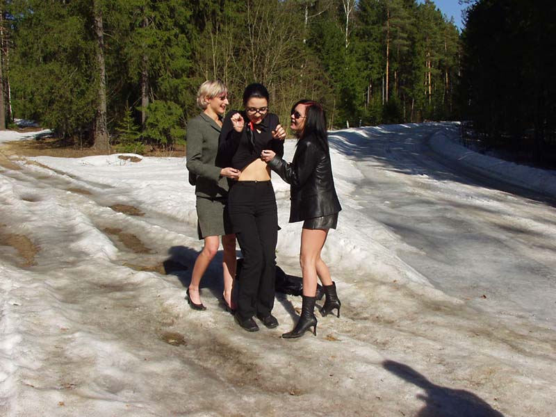 Три пиздоси полностью разделись в лесу