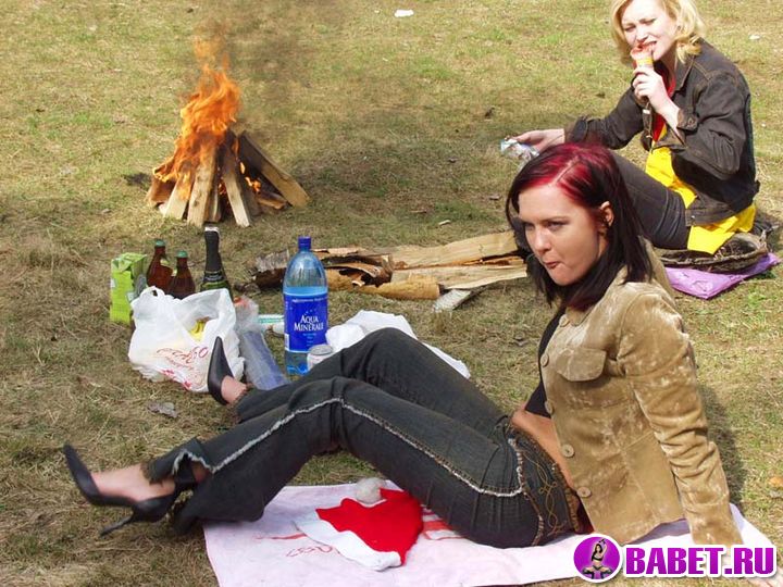 Три пиздёнки греются у костра